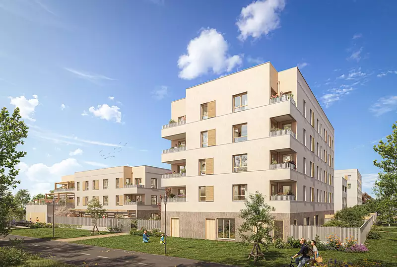 Implantée au cœur de l’écoquartier du Sycomore, la résidence Impulsion offre une nouvelle qualité de vie à Bussy-Saint-Georges, dans un environnement paysager généreux et apaisé. Son architecture contemporaine aux lignes élégantes, associant matériaux naturels et teintes douces, s’intègre harmonieusement à la végétation environnante et à l’esprit de quartier-jardin.