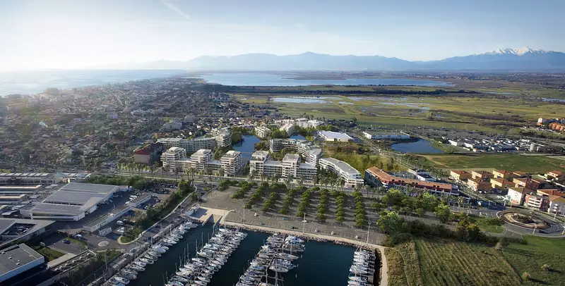 Port Alizés présente par ailleurs une situation stratégique : L’A9 est rapidement accessible que ce soit pour relier Perpignan, Toulouse, Montpellier ou Barcelone. Bleu Horizon, dans la parfaite continuité de style architectural de Port Alizés, est une résidence placée sous le signe de l'eau. Ses lignes fluides, ses terrasses en courbes ondulantes, tout en transparence, sont inspirées du mouvement des vagues, des jeux de lumière à la surface de la mer.