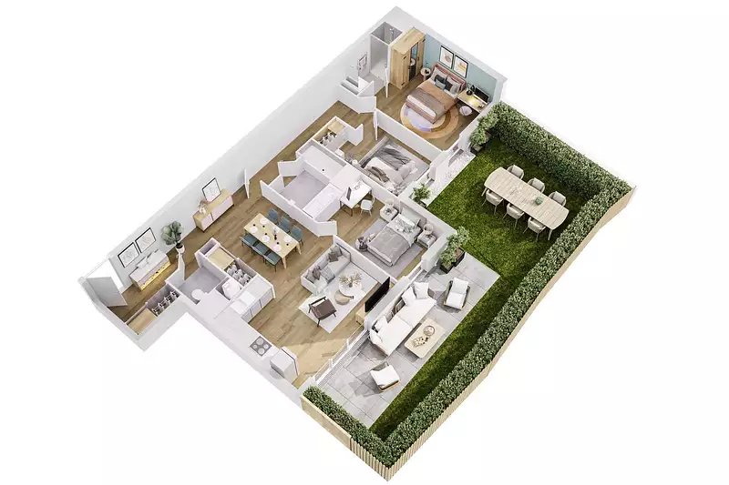 | 88,93 m² | 224 104 € | Rdc, Ouest, Sud, parking, terrasse (10.95 m²), jardin (36.2 m²) | Plan et Infos |