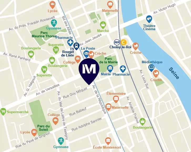 Notre nouvelle adresse, en plein centre-ville, bénéficie d’une localisation privilégiée, offrant un accès direct à tous les essentiels du quotidien : supermarchés, restaurants, services, ainsi qu’un ensemble scolaire complet de la maternelle au lycée, à seulement quelques minutes à pied. Les bords de Seine ainsi que le parc de la Mairie situés tout proches de la résidence, offrent un environnement naturel propice aux promenades et aux activités en plein air.