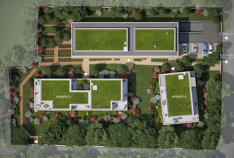 Les espaces verts soigneusement aménagés offrent un véritable écrin de verdure où vous pourrez vous ressourcer et profiter de la nature au quotidien.