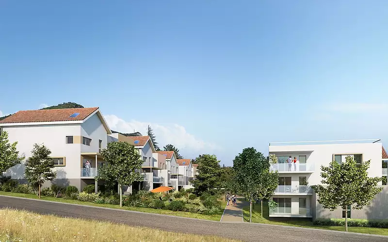 Nous vous proposons des maisons T4 avec des jardins pouvant aller jusqu'à 104 m² et une vue imprenable sur les montagnes.