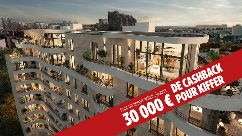 *Frais de notaire offerts sur une sélection d’appartements (liste disponible auprès du conseiller commercial) dans la résidence « L'incontournable » à Clichy commercialisée par INTERCONSTRUCTION et SERPI signée avant le 31 /12/2025 ; hors frais éventuels liés à l’emprunt et hors frais d’hypothèque, de caution de privilège de prêteur de deniers ou de tout autre frais éventuel de garantie lié au financement de l’acquisition, dans la limite des stocks disponibles. Les conditions de cette offre sont disponibles auprès de nos équipes commerciales. Jusqu’à 30 000€ versés sur votre compte à la livraison de votre appartement. *Offre «Cashback» Interconstruction – du 24 octobre au 31 décembre 2025. Interconstruction vous rembourse de 3 000 € à 30 000 € par virement bancaire, effectué à la remise des clés. Offre réservée aux personnes ayant signé un contrat de réservation pendant la période. Valable sur les logements d’un prix de vente supérieur à 200 000 € TTC, hors BRS. Non cumulable avec toute autre remise ou promotion en cours. Interconstruction se réserve le droit de modifier ou d’interrompre l’offre à tout moment. Voir règlement complet sur interconstruction.fr