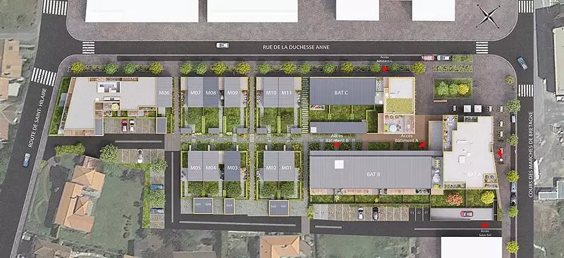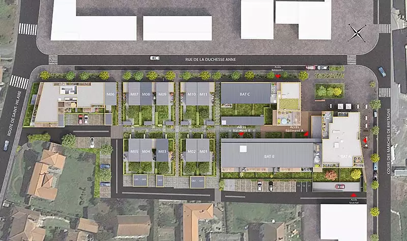 Travaux en cours ! Cette résidence à Clisson, au Sud-Est de Nantes, propose des appartements neufs du studio au 4 pièces aux espaces extérieurs généreux ainsi qu'une dizaine de maisons bénéficiant d'un jardin idéalement orienté Sud-Ouest et, pour certaines, d'un garage fermé - A seulement 20 min en train du centre nantais (gare à 7 minutes à pied du projet) - Le nouveau quartier du Champ de Foire, initié en 2006 - Les logements neufs que nous vous proposons se situent au Sud, à 10 minutes à pied du cœur de ville - L'accès au marché bi-hebdomadaire, aux commerces et services est donc, de fait, très aisé - Les promenades dominicales pourront avoir lieu sur les 13ha du Domaine de la Garenne Lemot - La placette centrale entourée de commerces, le cinéma et la médiathèque, etc. contribuent à la dynamique du quartier.