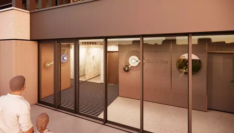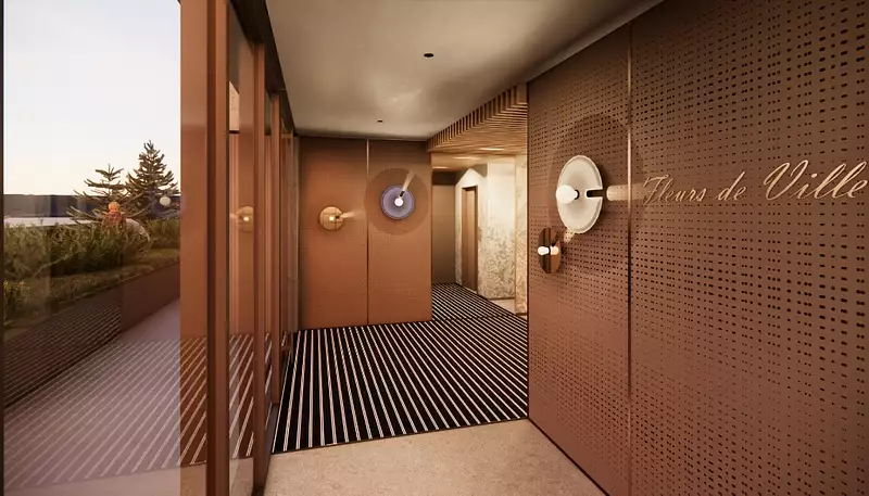 Hall d'entrée raffiné ; un espace d'accueil habillé de matériaux noble et d'un design contemporain,