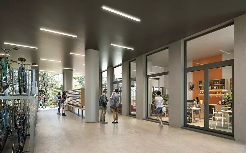 Station Academy propose 258 studios meublés et fonctionnels, et de multiples espaces de services au sein de la résidence : hall d'accueil, cuisine partagée, salle de vie commune, salle coworking, terrasse partagée sur le coeur d'îlot et même un magnifique rooftop aménagé !