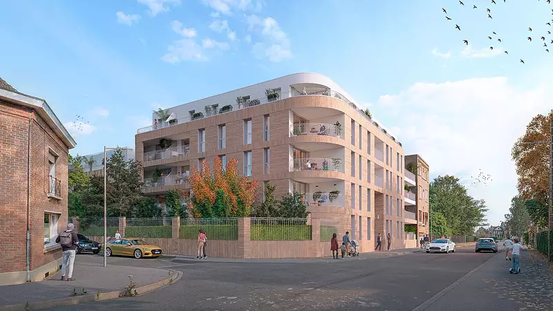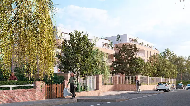 D’inspiration Art Déco, son architecture contemporaine s’intègre harmonieusement à son environnement, avec des façades en brique beige et des lignes raffinées. Les appartements, du studio au 4 pièces, offrent des agencements soignés, une belle luminosité et de généreux extérieurs ouverts sur un cadre paysager verdoyant.