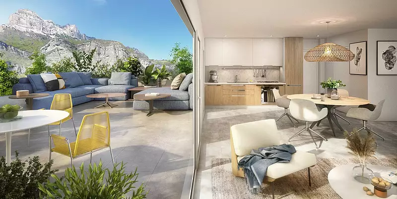Pensé pour votre confort, les pièces de vie de chaque appartement sont baignées d'une lumière naturelle et profitent de prestations de qualité. Conforme à la RE2020 (Réglementation Environnementale 2020), le confort thermique de votre appartement à Crolles sera optimal, aussi bien en hiver qu'en été.