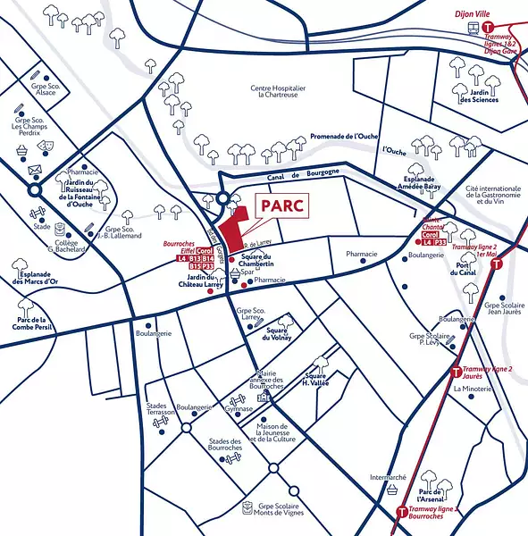 À deux pas du centre-ville, la résidence s’installe dans un quartier résidentiel calme, entre le canal de Bourgogne et les berges de l’Ouche. Commerces, écoles et transports sont accessibles en quelques minutes, facilitant la vie quotidienne.