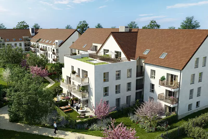 Tous les appartements, aux plans bien pensés, sont prolongés par un balcon, une terrasse ou un jardin, et orientés pour profiter au mieux de ce cadre naturel privilégié.