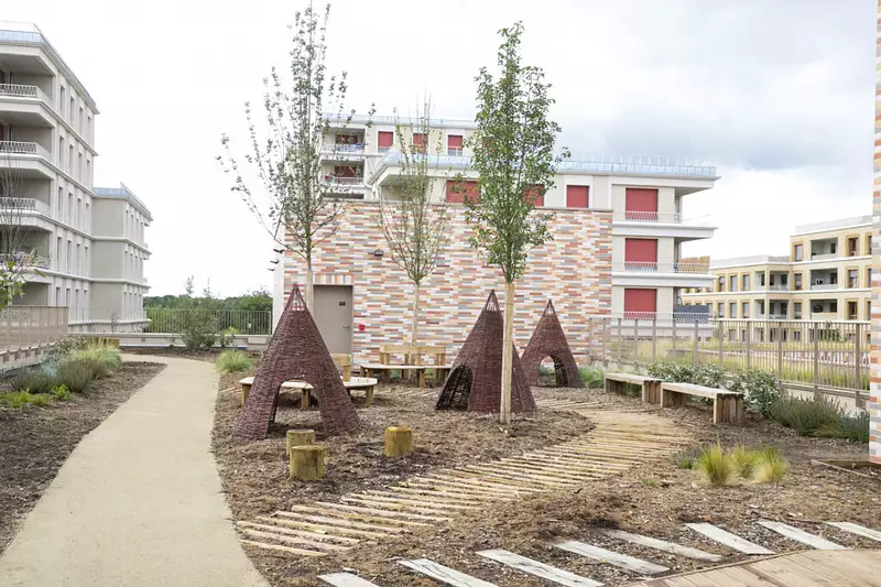 Cette réalisation à l'architecture séquencée et élégante dialogue parfaitement avec son cœur d'îlot paysager de 22 arbres.
