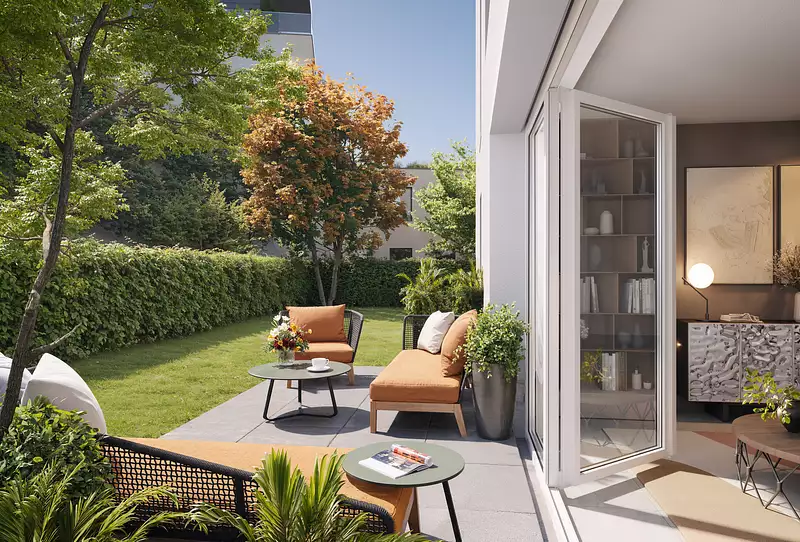 La résidence s’intègre parfaitement dans cet environnement dynamique et verdoyant, profitant d’un jardin public en accès direct à l’arrière du projet. Pensée pour offrir confort et bien-être, elle propose des appartements du 2 au 4 pièces, tous dotés d’un espace extérieur privatif, qu’il s’agisse d’un jardin, d’une terrasse ou d’un balcon. Pour un quotidien facilité, la résidence dispose également d’un stationnement en sous-sol et de locaux vélos, garantissant praticité et sécurité aux résidents.