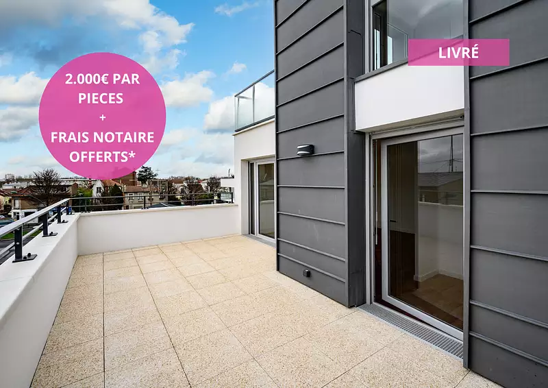 *OFFRE DE 2.000€ PAR PIECES SUR LES T3 & T4 + FRAIS DE NOTAIRE OFFERTS : Offre de 2.000€ par pièces les sur T3 et T4 du programme connexion à Epinay-sur-Seine selon stock disponible au 13/11/2025 hors prix d’appels + Frais de notaire offerts (hors frais d’acte de prêt et d’établissement du règlement de copropriété) offre conditionnée au 5 premières ventes, voir conditions en bulle de vente, offre valable jusqu’au 15/01/2026