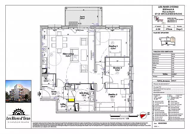 | 81 m² | 284 200 € | Nord, Ouest, ascenseur | Plan et Infos |