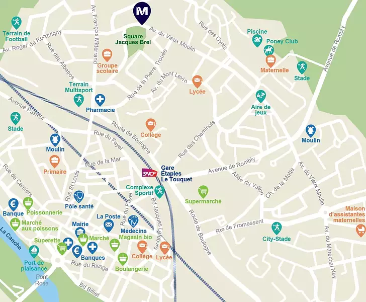 Stationnements privatifs, jardin paysager et calme en cœur de ville viennent parfaire le cadre. Située avenue du Vieux Moulin, à deux pas de la gare, face à un arrêt de bus et proche des services et commerces, elle vous place à seulement 10 minutes du Touquet, entre ville, nature et littoral.
