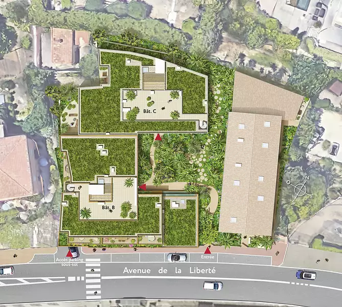 Composée de deux petits bâtiments à l’architecture élégante, la résidence s’organise autour d’un cœur d’îlot verdoyant. Tous les appartements disposent d’une loggia ou d’une terrasse, avec vue mer ou jardin, pour un cadre de vie unique entre mer et collines.
