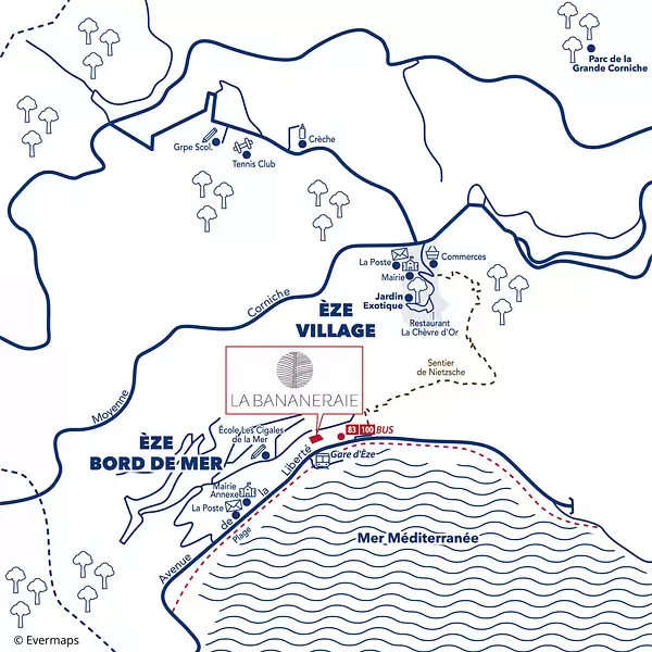 Idéalement située, elle bénéficie d’un arrêt de bus et de la gare SNCF en face, permettant de rejoindre facilement Nice ou Monaco.