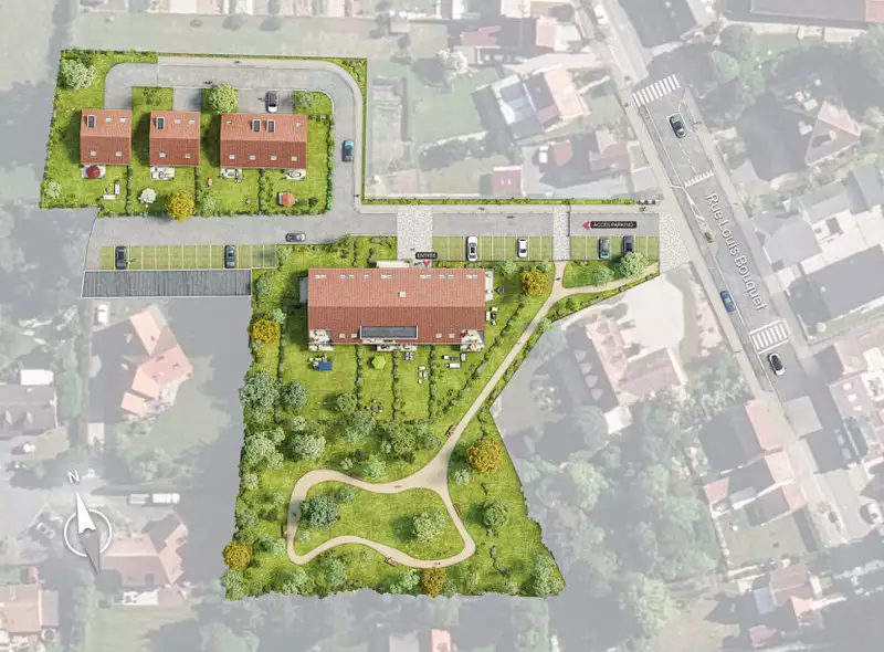 | 60,7 m² | 242 000 € | Est, Sud, parking, terrasse (9 m²), jardin (73 m²) | Plan et Infos |