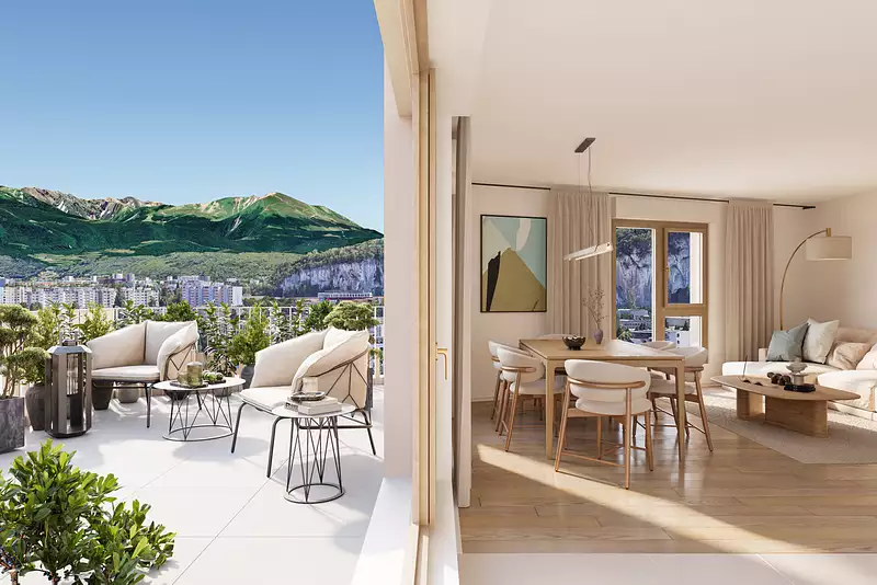 SOURCEA, un nouveau programme résidentiel dans la ZAC Portes du Vercors, à Fontaine, sur la métropole grenobloise, s’inscrit dans un nouveau quartier durable en développement.