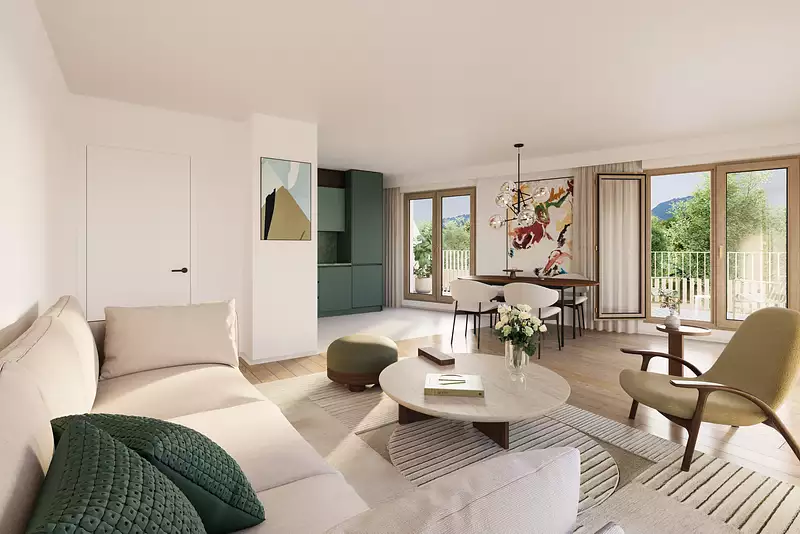 Les appartements sont dotés d'une double orientation, avec de larges ouvertures sur l’extérieur, terrasses, loggias ou jardins privatifs, pour prolonger les espaces de vie. Celliers, local à vélos et parking sécurisé complètent le confort.