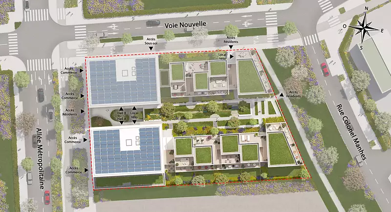 Pensé pour un quotidien apaisé, le quartier proposera cheminements doux, espaces verts, et toutes les commodités dans un rayon de 10 minutes à pied.