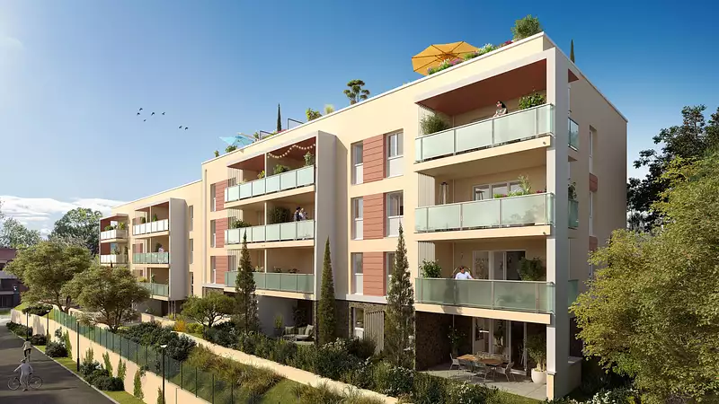 Vous aimerez ses volumes fonctionnels caractérisés par une belle luminosité. Hiver comme été, ses logements bénéficient de cette lumière singulière du Sud. Les appartements se prolongent par une terrasse préservée des regards par des haies végétales où toute la famille profitera de la douceur du climat méditérranéen.