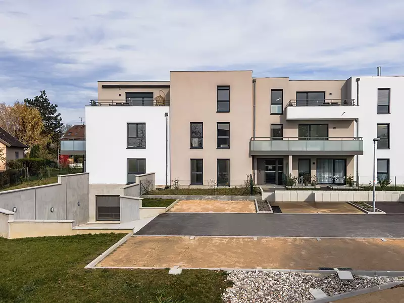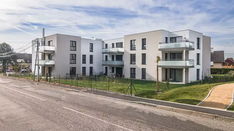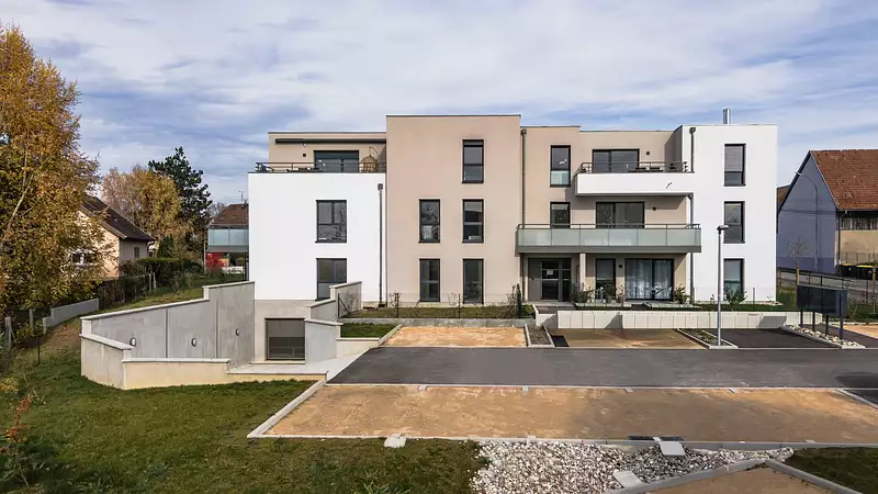 Valériane est située dans un village au charme alsacien, à seulement 10 minutes de Mulhouse. La résidence dispose de garages en sous-sol (boxes) et d’un ascenseur. Chauffage collectif au pellet, compteurs et thermostats individuels, chauffage au sol. Prestations de qualité.