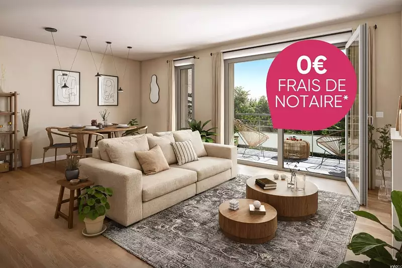 *Frais de notaire offerts, offre valable pour les 5 prochains réservataires hors studios/T1, sous conditions de la signature d'un contrat de réservation jusqu'au 31/03/2026 et à la réitération de l’acte authentique de vente dans les 3 mois qui suivent la réservation.