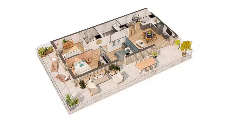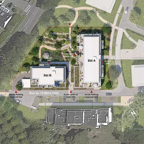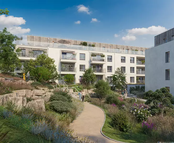 Cette résidence de 30 appartements, du studio au 5 pièces, offre un cadre de vie agréable avec un cœur d’îlot paysager. Chaque logement bénéficie d’un espace extérieur généreux : balcon, terrasse ou loggia, et d’au moins un stationnement sécurisé en sous-sol. Prestations et équipements de qualité pour un confort de vie optimal (parquet stratifié, volets roulants motorisés, placards aménagés, pompe à chaleur collective, local vélos, accès sécurisés). En cœur de résidence, l'aménagement paysager offre un véritable écrin de verdure, avec la présence de nombreux arbres et arbustes.