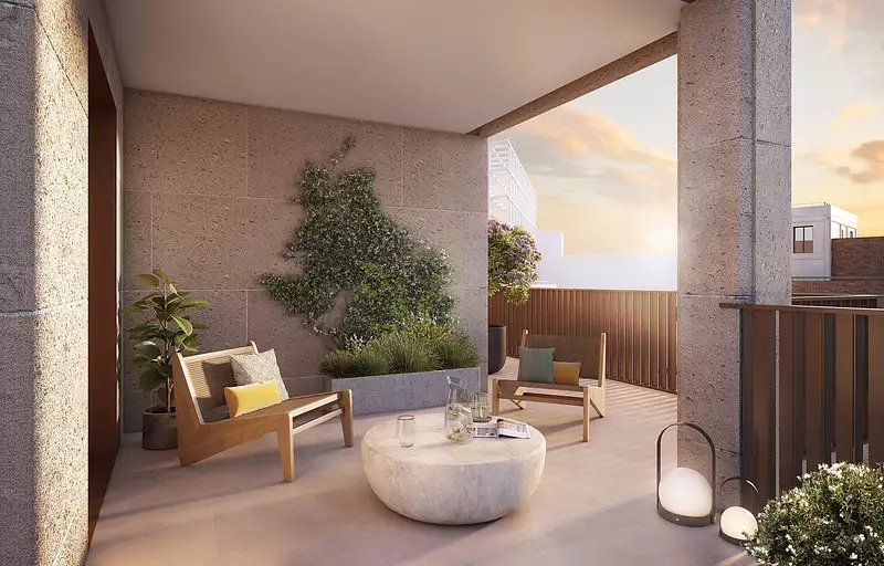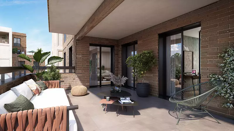 - Balcon, loggia ou terrasse pour chaque logement, avec de belles vues sur le jardin intérieur