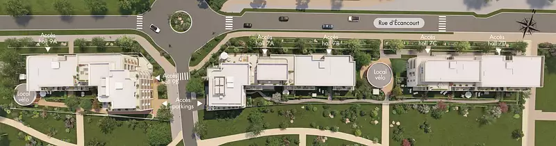 L'emplacement garantit un accès pratique à divers points : la gare de Saint-Lazare (desservie par le RER A) est à seulement 40 minutes*, tandis que Charles de Gaulle - Étoile est à 35 minutes* par le RER A depuis la gare de Neuville Université, située à seulement 11 minutes* de votre future résidence.