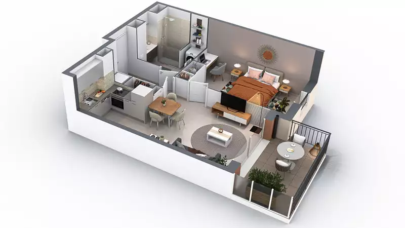 | 47,22 m² | 192 000 € | Nord, Est, parking, terrasse (8.8 m²) | Plan et Infos |