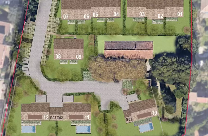 Le Domaine de la Bastide se déploie dans un écrin de verdure de plus de 6400 m² composé de 3 villas individuelles avec piscine, 9 maisons jumelées ainsi qu'une bastide provençale du 19e siècle conservée en l'état. Les logements, du T4 au T5, offrent des surfaces généreuses allant de 92m² à 145m² avec jardins privatifs.