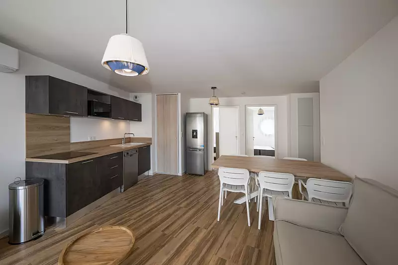 Très verdoyant, le Couchant est également parcouru de nombreuses allées piétonnes et cyclables. Il s’anime autour d’une vraie vie de quartier, grâce à ses nombreux commerçants et restaurants. Accessible par une voie en impasse et bordée de cheminements piétons commerçants, Nymphéa est le lieu idéal où séjourner en villégiature. Cette résidence de tourisme est issue de la réhabilitation complète de l’ancien hôtel Acropolis, situé allée d’Athènes. Son architecture typique tout en courbes et contre-courbes est entièrement conservée et mise en valeur. Nymphéa propose 18 appartements, de 32 à 71 m², accueillant de 2 à 6 couchages. Baignés de lumière grâce à leurs grandes ouvertures, les logements bénéficient de superficies confortables et optimisées. Les pièces de vie sont prolongées par d’agréables terrasses, naturellement ombragées par les arbres de haute tige bordant le bâtiment. Nymphéa offre des logements fonctionnels prêts à vivre, entièrement meublés, équipés et décorés. Vous disposez ainsi d’un logement clé en main, prêt à accueillir les vacanciers, ou idéal pour votre résidence secondaire. Chaque appartement dispose également d’une place de stationnement. L’investissement para-hôtelier : de nombreux avantages