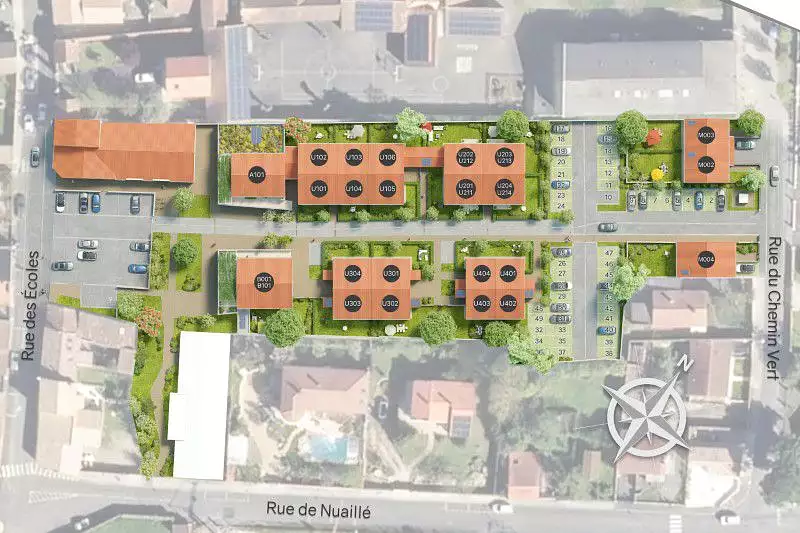 Découvrez « Le Clos du Chemin Vert », réalisation composée d’Appartements-Jardins 2 pièces avec jardin ou balcon, de Villas-Jardins 3 ou 4 pièces duplex avec jardin, d’une Villa-Jardins 4 pièces de plain-pied avec jardin, de maisons 5 pièces avec jardin et garage attenant ; ainsi que d'appartements 5 pièces avec terrasse offrant de belles prestations. Chaque logement dispose de places de stationnement : 1 place pour les 2 pièces et 2 places pour les 3 pièces et plus. Fort de son savoir-faire de plus de 50 ans en immobilier résidentiel, European Homes réinvente une fois de plus la qualité de vie à La Jarrie avec son concept unique des VILLAS-JARDINS et APPARTEMENTS-JARDINS rendant possible le rêve d’une maison agrémentée de son jardin privatif engazonné. Accessibles à tous, nos habitations sont conçues pour répondre à toutes les préférences de vie. Situé en cœur de ville de La Jarrie et à 9 min** en TER ou 10 min** en voiture de La Rochelle, la résidence procure à ses occupants un confort absolu où toutes les commodités se trouvent à portée de main : à moins de 3 min** à pied des écoles, mairie et commerces, à proximité des axes routiers et de la départementale 939**, proche des transports en commun (bus Yelo) **.
