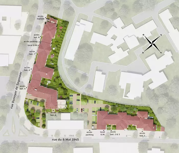À l'angle de la rue du 8 mai 1945 et de la rue Dunoyer de Segonzac, cette nouvelle adresse vous propose de découvrir un quotidien de qualité au coeur d'un environnement naturel verdoyant.
