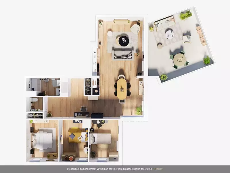 Découvrez sans attendre ce très bel appartement neuf de 90 m proposant 3 chambres, une pièce de vie généreuse ouverte sur une grande terrasse entourée de jardinière.