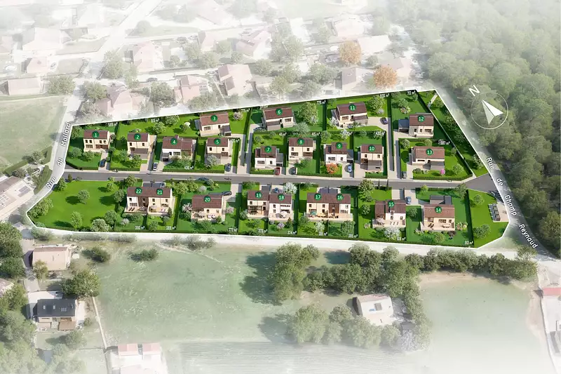 Nexity vous propose 12 terrains à bâtir entièrement viabilisés au sein du nouveau lotissement Le Coteau d'Artets, idéalement situé en plein centre du village de La Rivière.