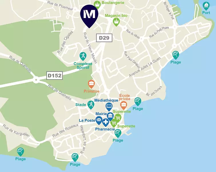 Larmor-Plage, station balnéaire prisée de Lorient, séduit par son cadre exceptionnel entre mer et nature, avec ses plages, ses équipements nautiques et ses vues imprenables sur l'île de Groix. À seulement 5 minutes de Lorient, cette ville allie accessibilité, dynamisme et qualité de vie tout au long de l’année.