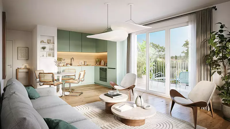 A découvrir : votre 3 pièces à rez-de-chaussée à partir de 219 000 €(1). Superbe appartement qui séduit par l'harmonie parfaite entre confort intérieur et art de vivre en plein air. La pièce de vie s'ouvre naturellement sur une terrasse intimiste de 6,77 m², donnant elle-même sur un jardin privatif d'exception de 100 m². Un véritable écrin de verdure, rare en résidence, permettant de profiter d'un cadre de vie privilégié.