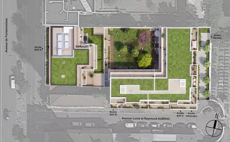 La résidence Karactère s'intègre dans un cadre de vie familial idéal, à 150 mètres du centre commercial OKABÉ et à 400 mètres du marché et commerces du centre-ville.