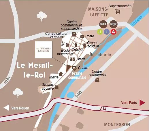 Entre Maisons-Laffitte et Saint-Germain en Laye, notre nouvelle résidence prend place à 20 m de la Mairie du Mesnil-le-Roi et s'adosse au centre culturel Georges Brassens. Idéale pour une vie familiale, au sein d'un environnement privilégié à l'esprit "village", elle expose sa façade principale au sud-est et propose 26 appartements seulement, du 3 au 5 pièces, ouverts pour la plupart sur un espace extérieur.