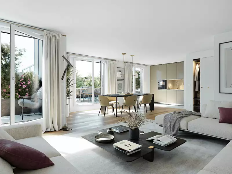 Découvrez des appartements neufs du studio au 5 pièces, conçus pour le confort et la luminosité. Loggias, balcons, terrasses ou jardins privés, chaque logement bénéficie d'un espace extérieur pour une qualité de vie optimale. Programme RE 2020 avec espaces paysagers et stationnements équipés pour la mobilité douce.