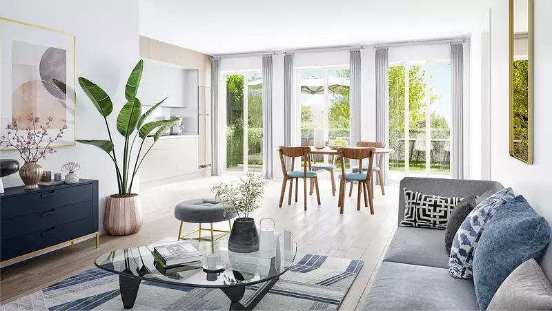 Du studio au 5 pièces, les appartements séduisent par leurs volumes généreux, avec jusqu’à 2,60 mètres de hauteur sous plafond, et par leurs espaces extérieurs privatifs, idéals pour se détendre en plein air.