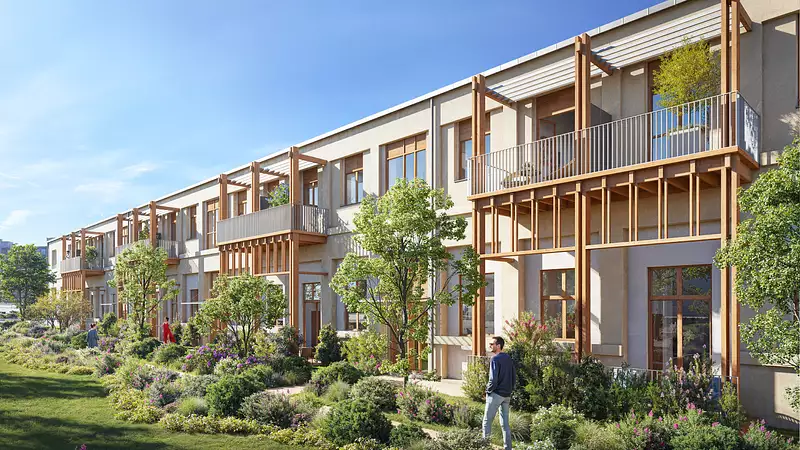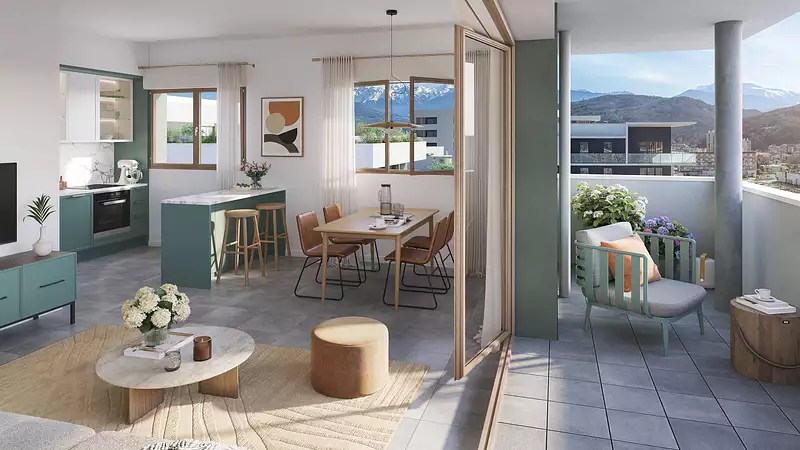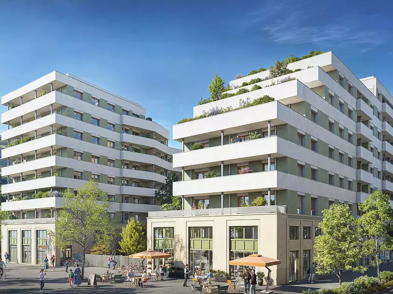 Logements neufs, réhabilitation et commerces font de ce projet un lieu de vie unique au sein d'un cadre de vie diversifié et apaisé, ouvert sur de vastes jardins paysagers et les montagnes environnantes.