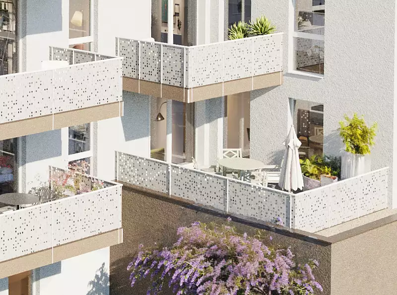 Les grandes terrasses, de 12 à plus de 21 m², deviennent de véritables pièces à ciel ouvert : déjeuner au soleil, coin lounge, espace végétalisé… tout est possible.