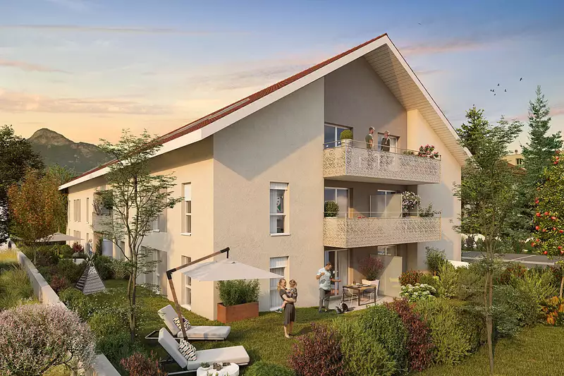Située dans un environnement paisible et verdoyant, notre nouvelle résidence propose seulement 35 logements un étage, garantissant une atmosphère intimiste et sereine pour tous ses résidents. Du 2 au 4 pièces, chaque appartement est prolongé d’un espace extérieur — balcon ou jardin privatif — véritable pièce à vivre supplémentaire pour profiter des beaux jours et de vues sur les montagnes environnantes. Plusieurs places de stationnement en sous-sol pour chaque appartement, une cave pour chaque résident et le local vélos apportent un réel confort au quotidien.