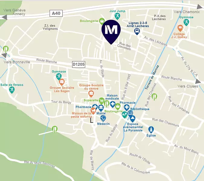 Idéalement desservie par l’autoroute, Marnaz se trouve à seulement 40 min de Genève et Chamonix et à 50 min d’Annecy. La commune offre un équilibre parfait entre vie pratique et qualité de vie.