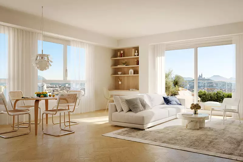 Ces appartements d’exception se distinguent par leurs vastes surfaces vitrées uniques, offrant une luminosité incomparable et permettant de profiter quotidiennement des couchers de soleil. L’agencement intérieur/extérieur, est pensé pour maximiser le confort et profiter pleinement du climat méditerranéen. Les prestations, soigneusement sélectionnées pour offrir un cadre de vie optimal : système de chauffage/rafraîchissement réversible, domotique pour une gestion intelligente, parquet en chêne pour une touche d’élégance intemporelle.