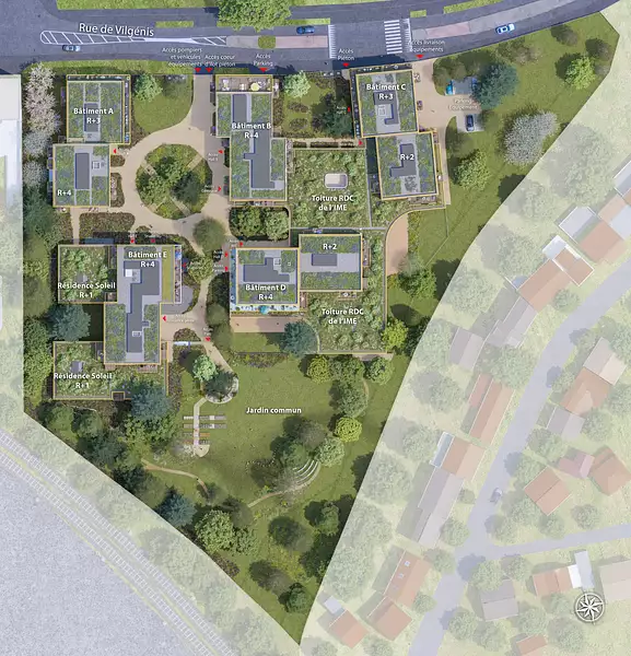 Un coeur d'îlot paysager et des espaces communs viennent compléter la résidence pour un cadre de vie à la fois familial, calme et pratique.